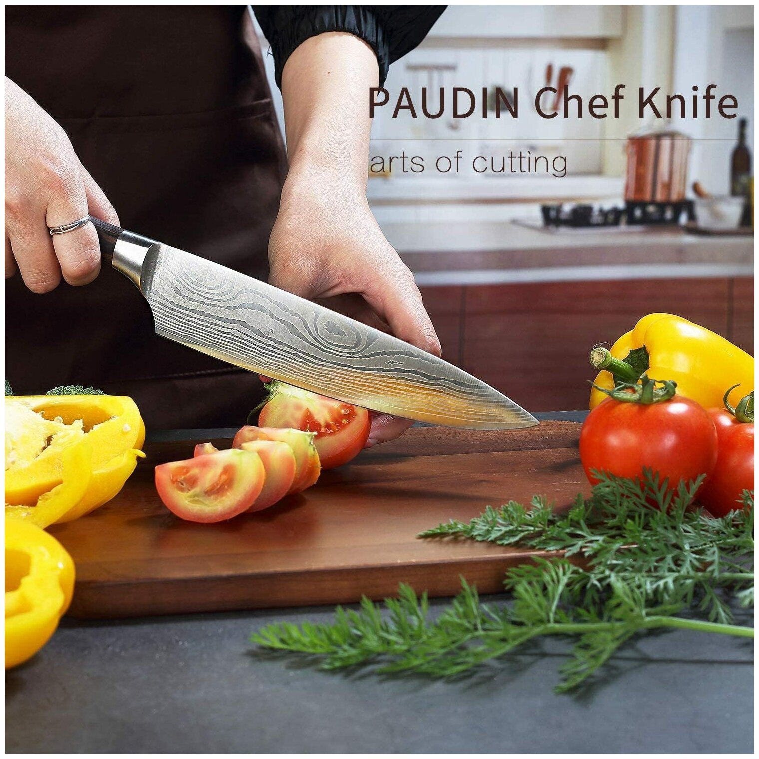 PAUDIN Pro Нож кухонный профессиональный шеф повара разделочный слайсер для мяса рыбы и овощей фруктов лезвие 20 см
