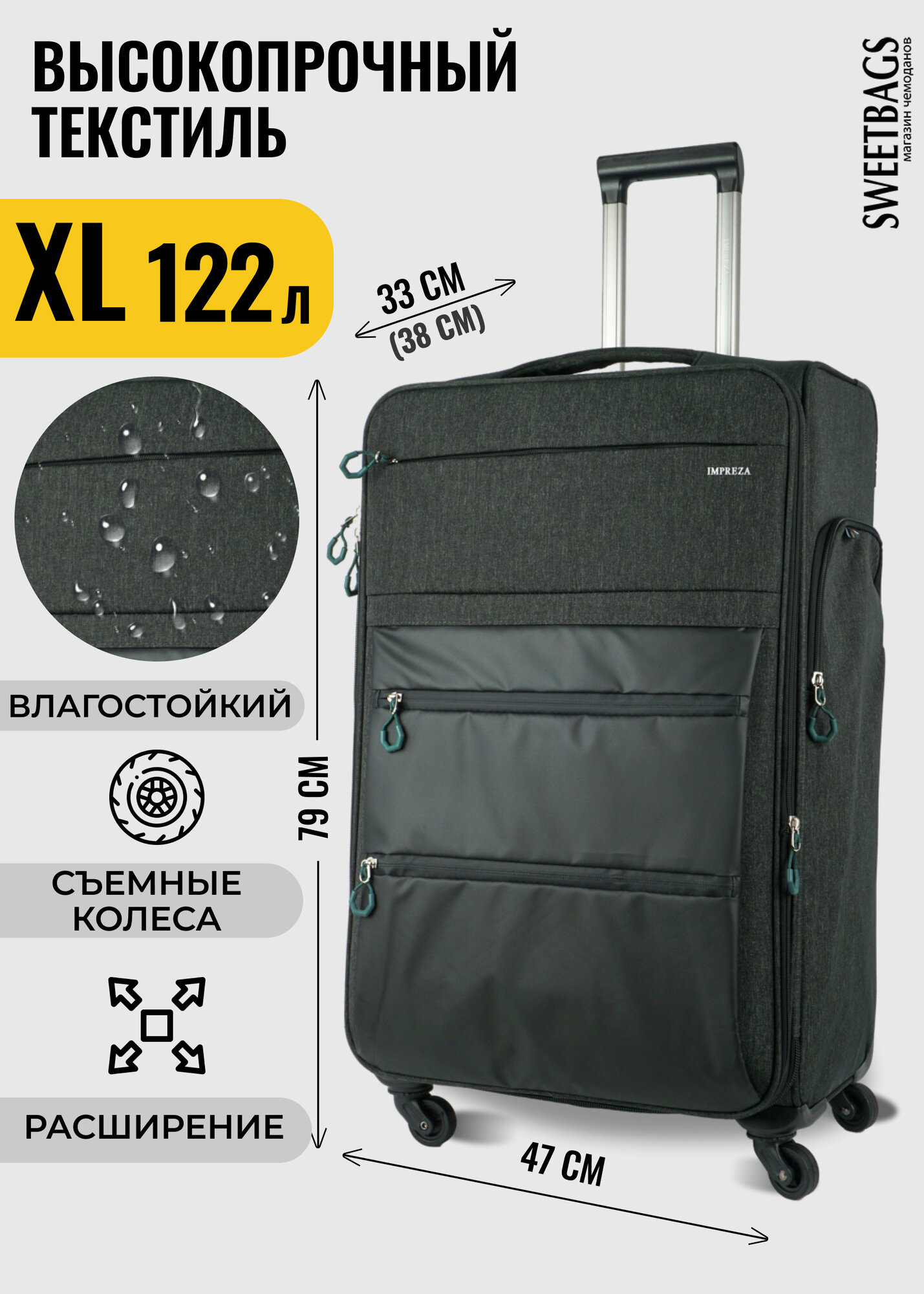 Отзывы на Чемодан Sweetbags текстильный большой с расширением с 4-мя съемными колесами (waterproof) серо-зеленый XL