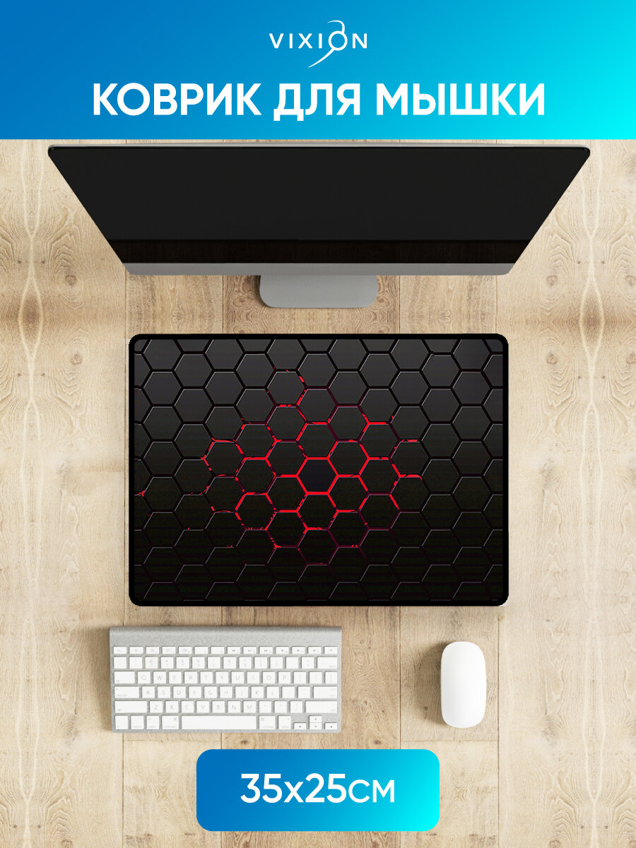 10 цен на Большой коврик для мышки игровой 350x250x3 мм Соты красный