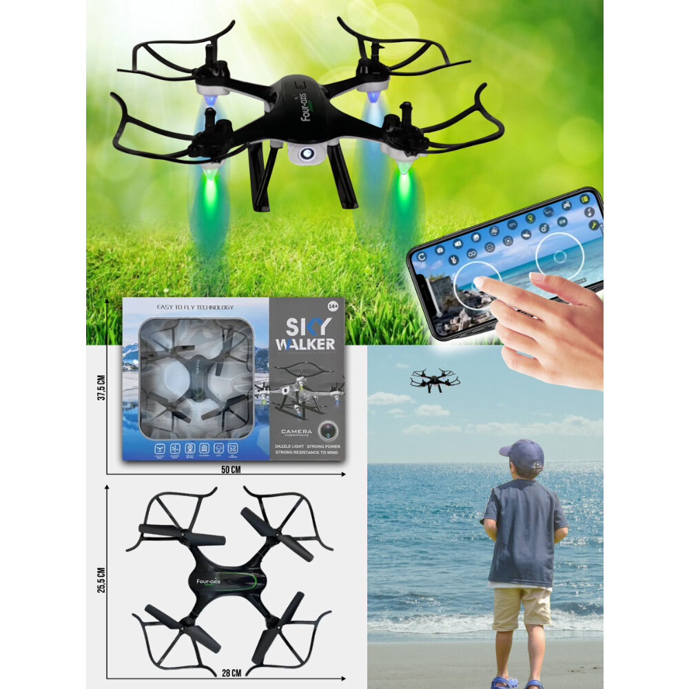 Квадрокоптер с камерой Wi-Fi 300000 пикс, дрон детский на радиоуправлении: 31см, свет, безголовый режим, разворот 360 информация:
