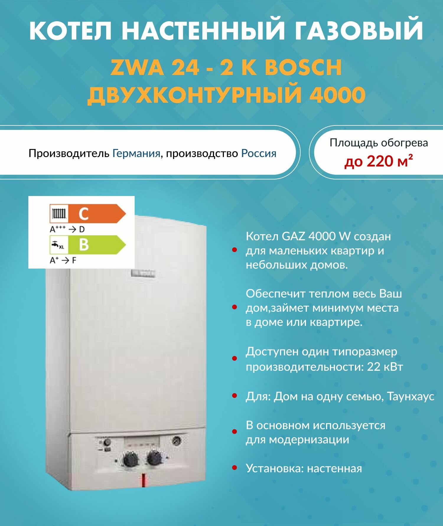 Отзывы на Котел газовый ZWA 24 - 2 K Bosch (Бош) 7736901489 настенный двухконтурный