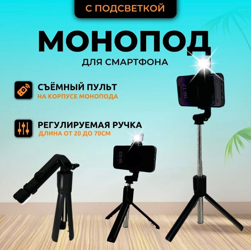 10 цен на Селфи - палка R1L с подстветкой / монопод трипод с блютуз / bluetooth селфи - палка 70 см