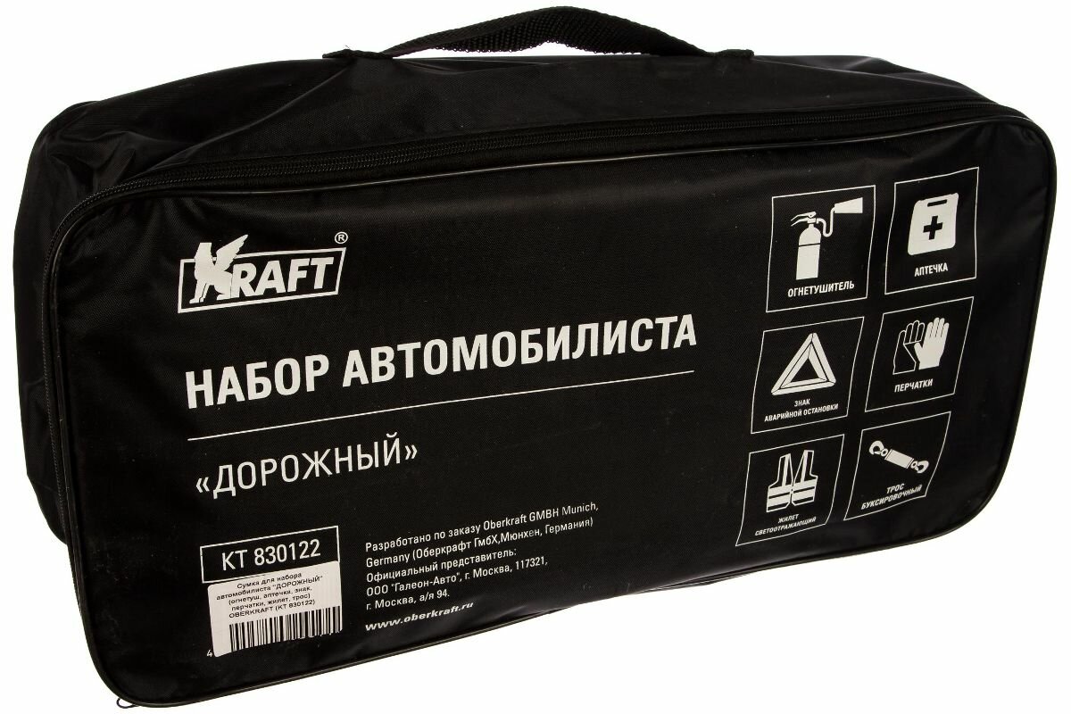 KRAFT AUTOMOTIVE KT830122 Сумка для набора автомобилиста дорожный (огнетуш, аптечка, знак, перчатки, жилет, трос) OBERKRAFT KT830122