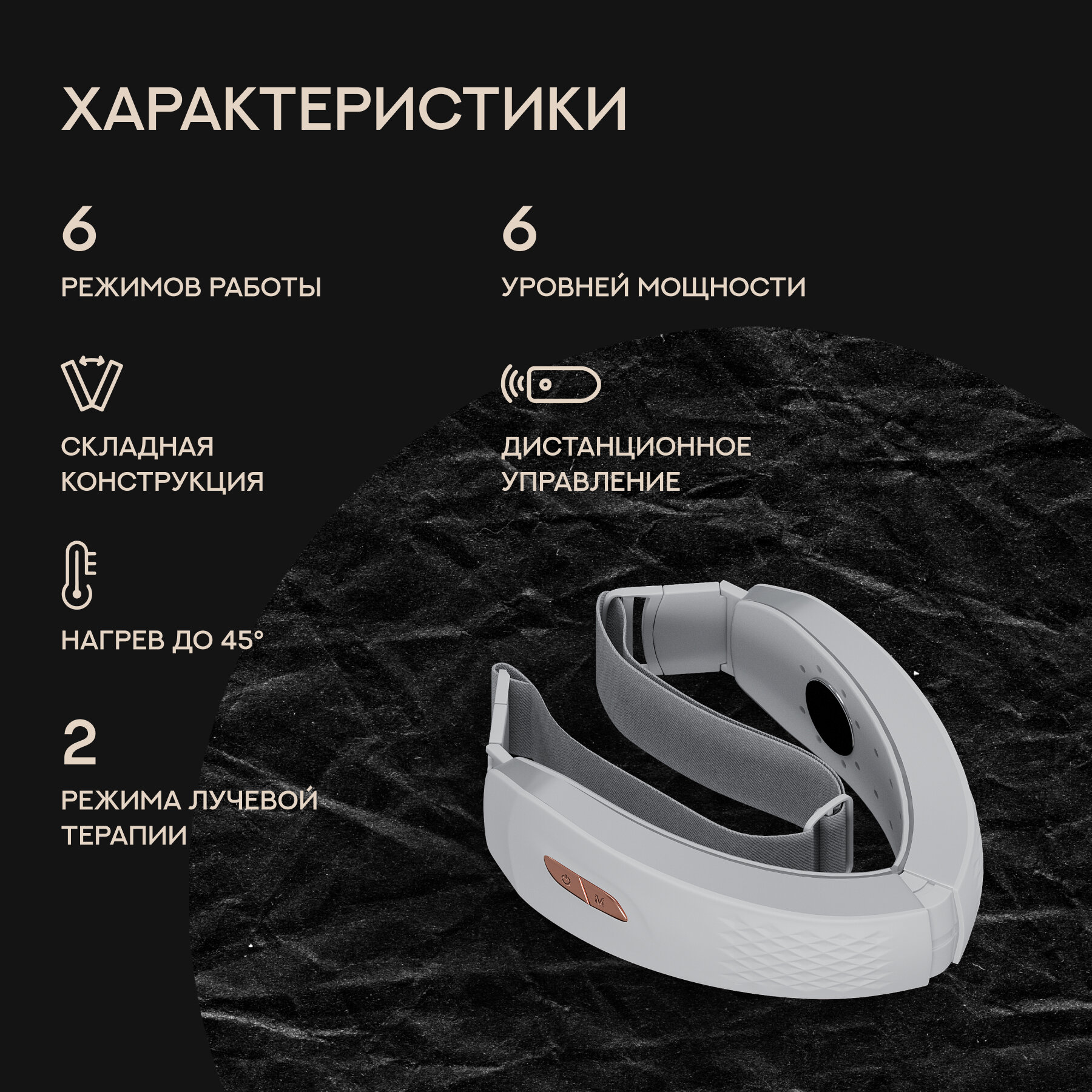 | Комплектность | Массажер Пульт Зарядник Ремешок |
