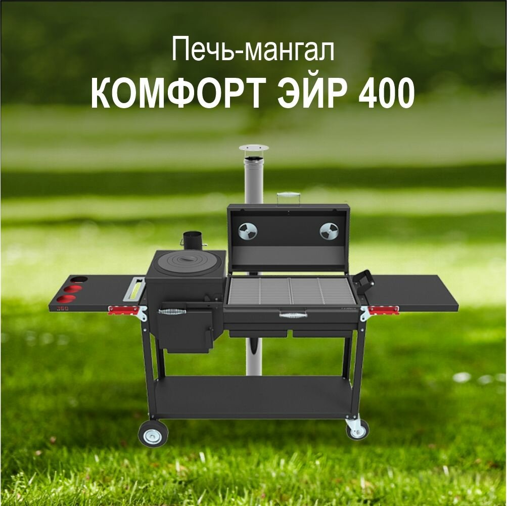 Отзывы на Печь-мангал Grillver "Искандер 400 комфорт эйр" с крышкой гриль и решеткой из чугуна + дополнительно с чугунной плитой (сталь 3 мм, для казана 12л)