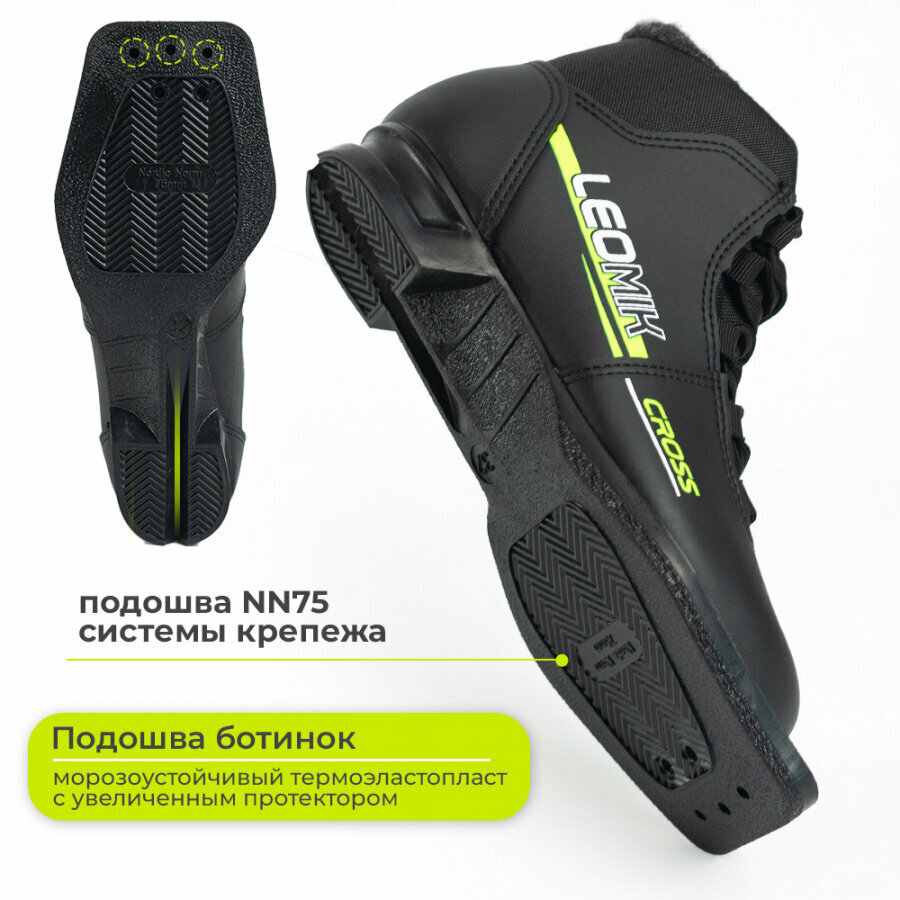 Ботинки лыжные Leomik Cross NN75, черные, размер 45 информация: