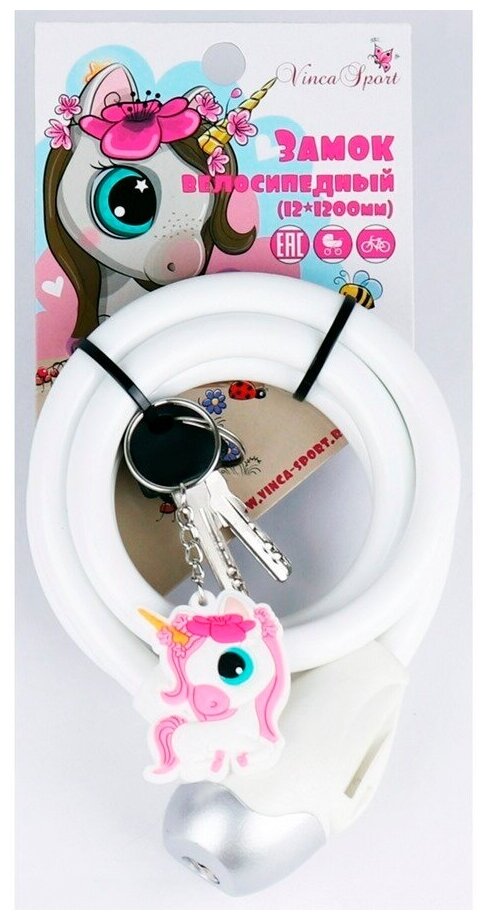 VS 561 Lili. Замок велосипедный c брелоком 12*1200мм, с защитой от влаги и креплением, белый. 798 ₽