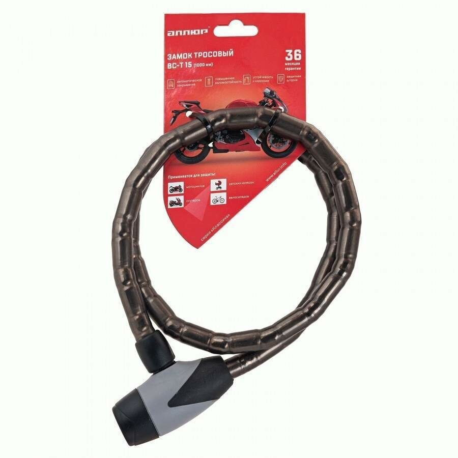 Замок велосипедный аллюр вс-т 15 1000мм с тросом в стальной оплетке