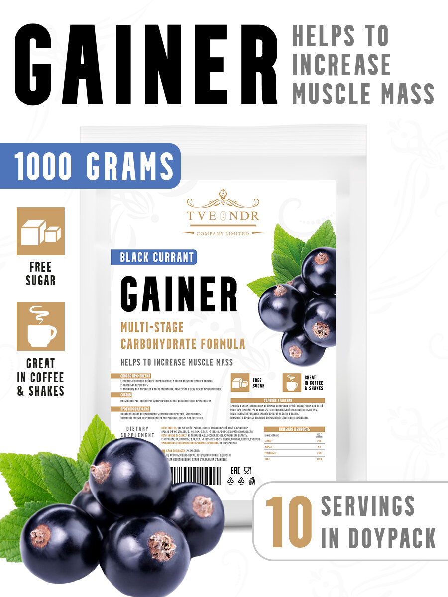 10 цен на TVENDR Гейнер высокоуглеводный со вкусом Черная смородина 1000г