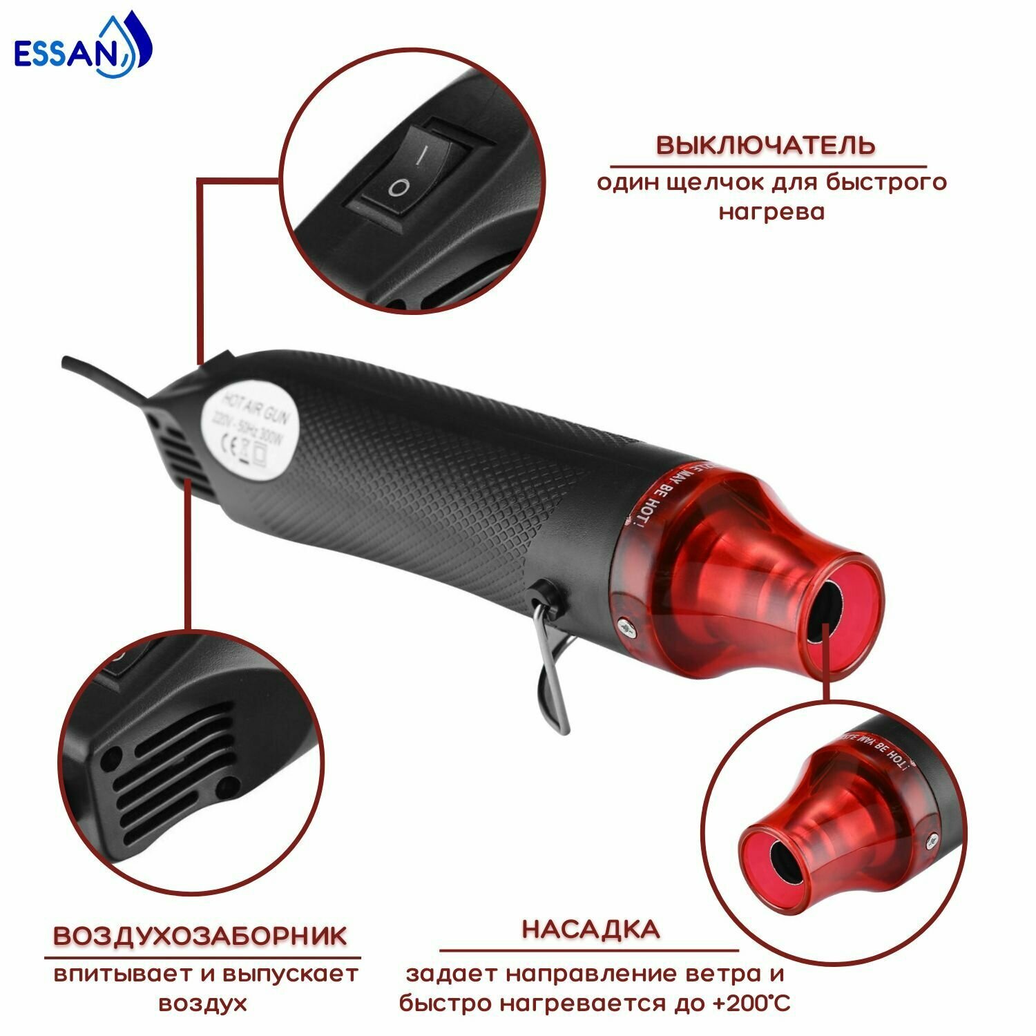 | Назначение | изоляция проводов / разморозка труб / размягчение покрытий / сварка пластика / удаление краски |