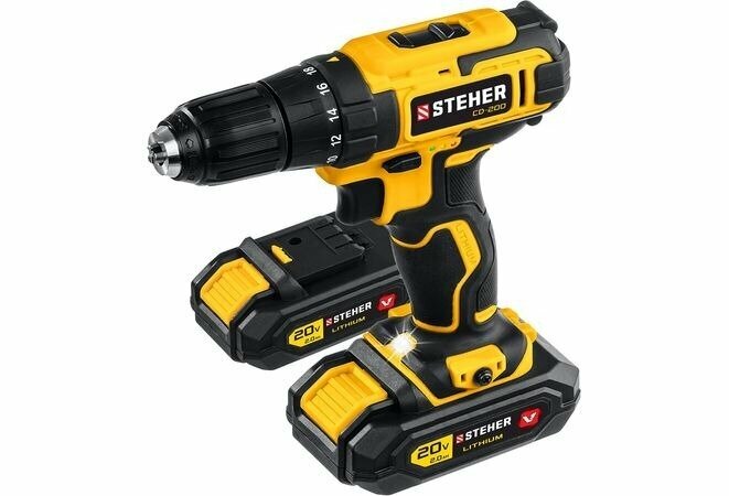 Дрель-шуруповерт STEHER 20 В, 2 АКБ (2Ач), в кейсе информация: