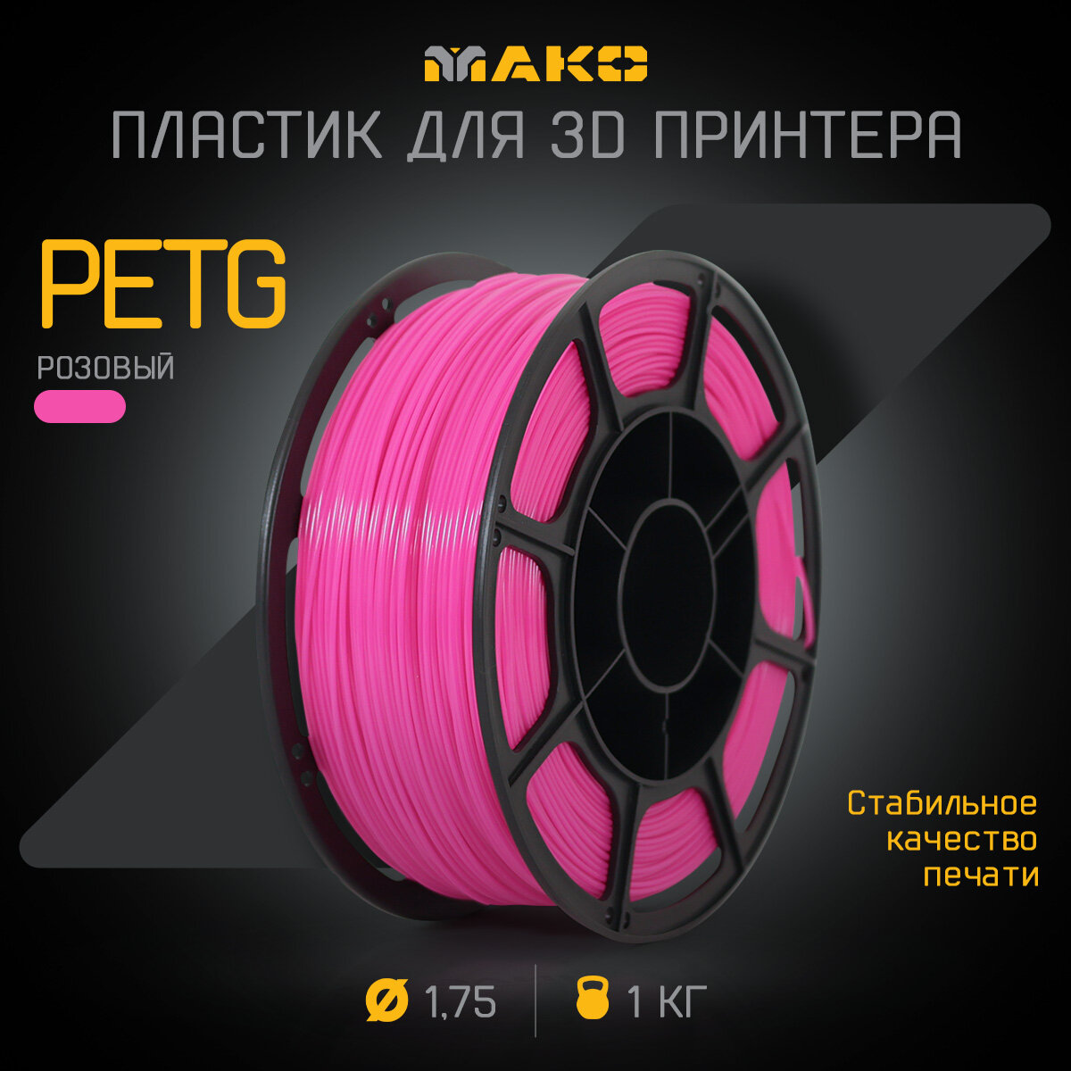Пластик для 3D печати PETG мако 1.75 "Розовый", 1 кг информация: