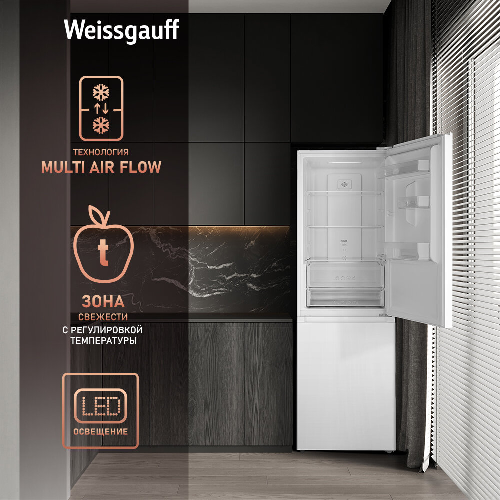 Отдельностоящий холодильник с инвертором Weissgauff WRK 185 Total NoFrost Inverter White двухкамерный шириной 60 см, 3 года гарантии, Тихий 40дБ, Высота 185см, Дисплей, Зона свежести, Супер заморозка 15кг сутки, Перенавешиваемая дверь информация: