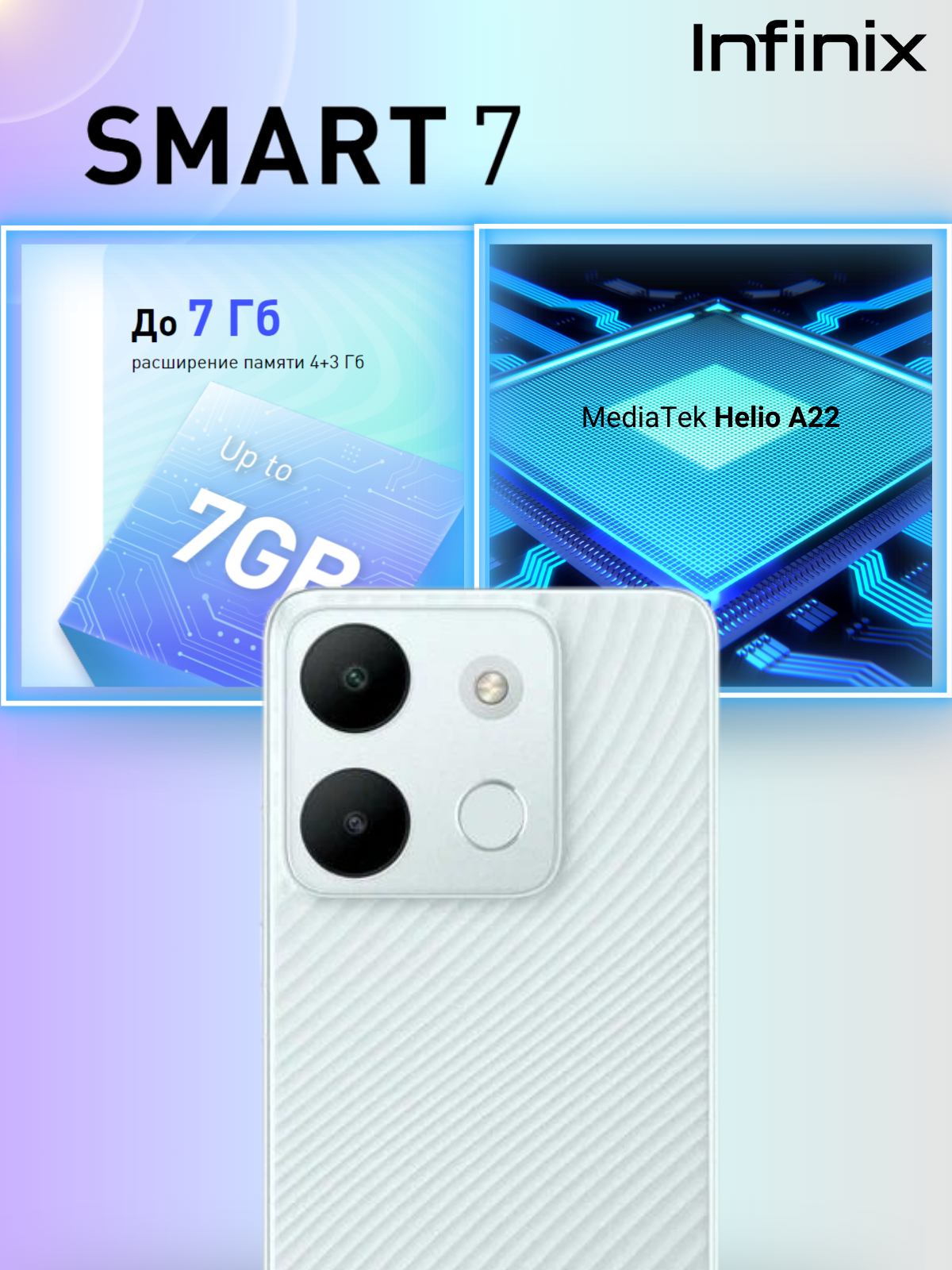 Смартфон Infinix SMART 7 HD 2/64 ГБ Global для РФ, 2 nano SIM, Silk Blue