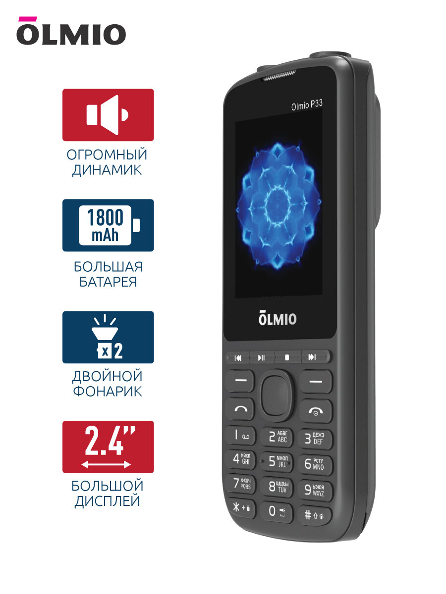 Мобильный телефон P33 Olmio с большим динамиком, черный информация: