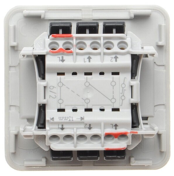 Выключатель двухклавишный Bylectrica Пралеска, брызгозащищенный, открытой установки, 6А, 250В, белый. А5 6-224.