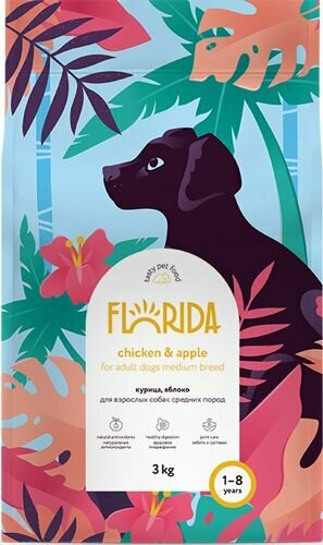 Florida сухой корм для взрослых собак средних пород Курица и яблоко, 3 кг. информация: