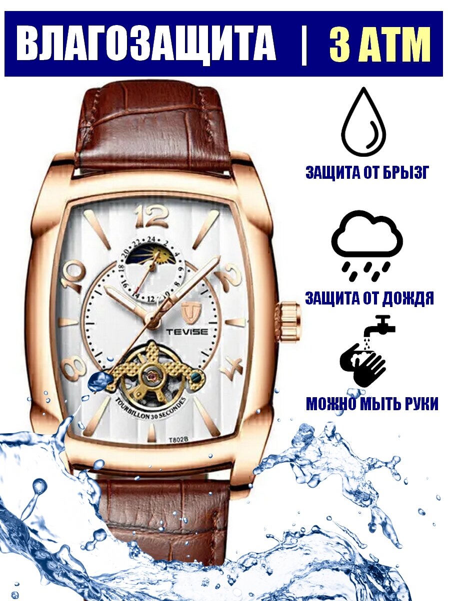 10 цен на Часы наручные мужские механические с автоподзаводом золотые TEVISE. Отличный подарок !