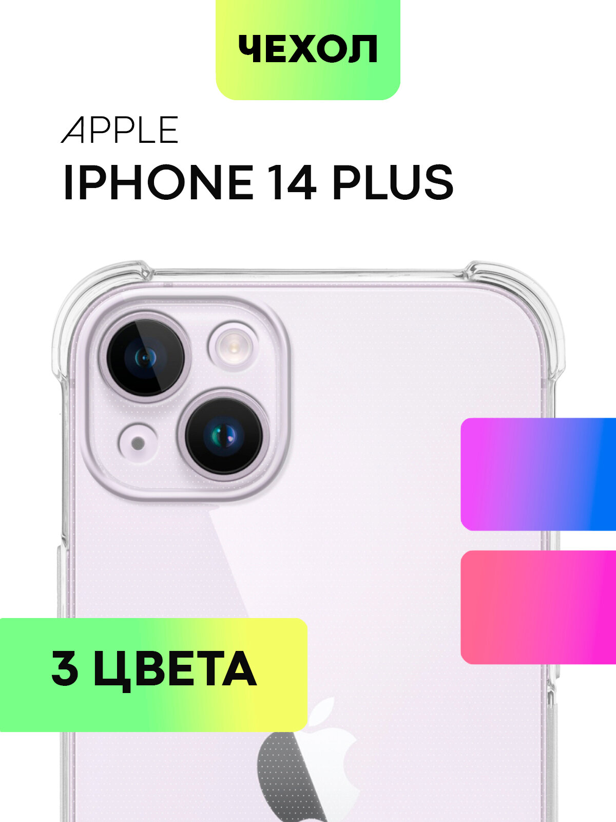 Противоударный чехол для Apple iPhone 14 Plus, прозрачный фиолетово-розовый 390 ₽