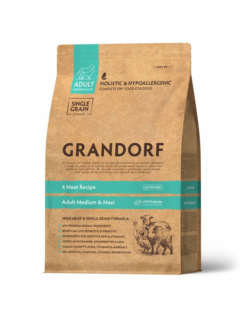 Сухой корм для собак GRANDORF 4 Meat Recipe Adult Medium and Maxi средних и крупных пород 4 вида мяса с живыми пробиотиками 3 кг информация: