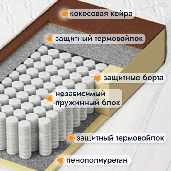 Фабрика Сна Матрас EDMOND, независимые пружины, кокос, средняя жесткость, анатомический, 90х200 см