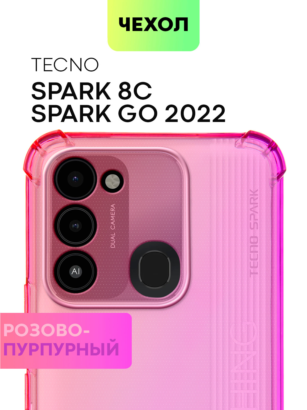 Противоударный чехол BROSCORP на Tecno Spark 8C и Spark Go 2022 (Техно Спарк 8С и Го 2022), с усиленнными углами, розово-фиолетовый 404 ₽