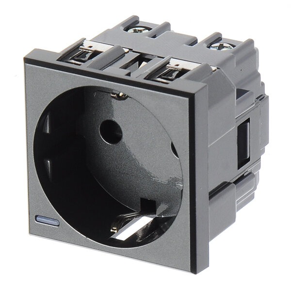 Розетка Axolute с заземлением и шторками, 2 модуля (антрацит) информация: