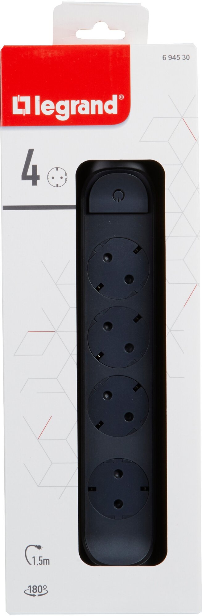 Удлинитель с поворотным основанием серии Комфорт 4 x 2К+З с кабелем 1,5 м., цвет: черный, LEGRAND 694530 (1 шт.) информация: