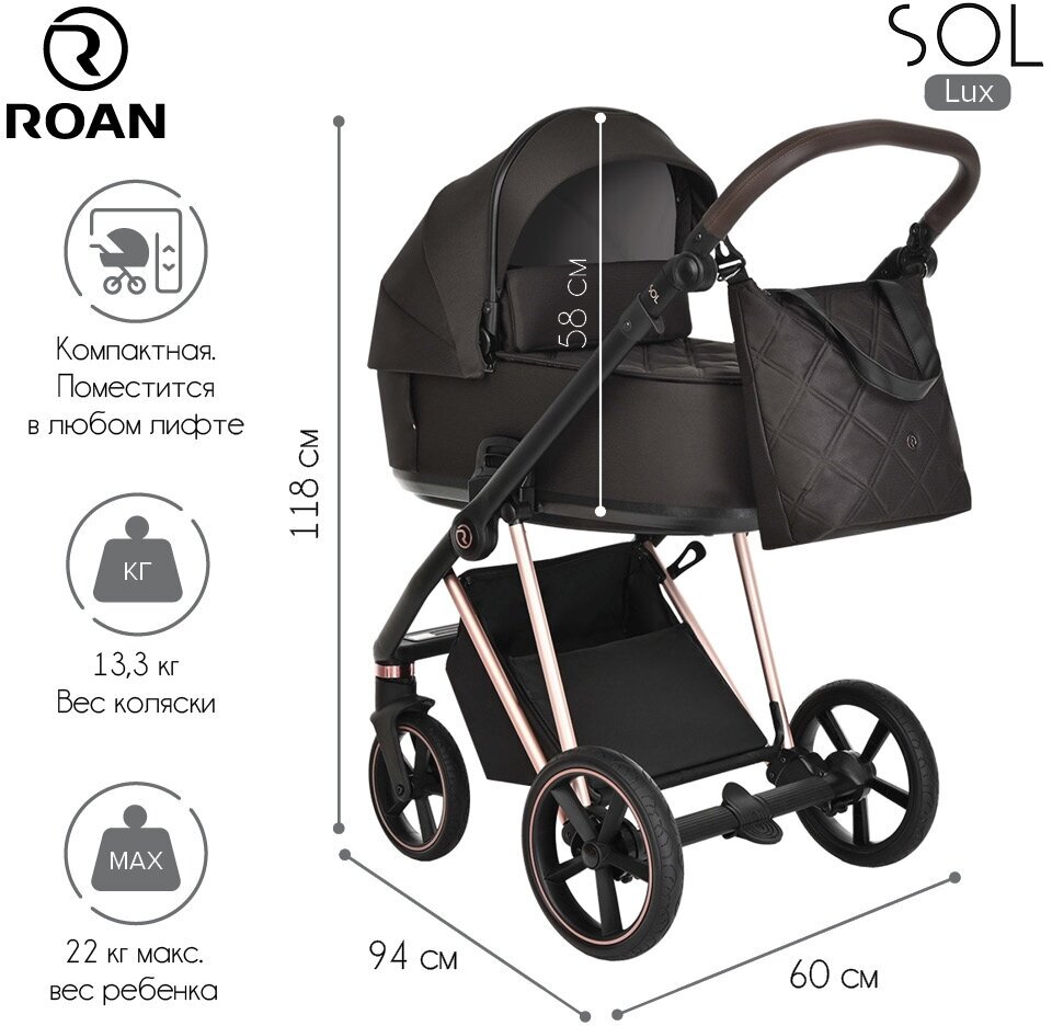 Коляска 2 в1 Roan Sol Lux Choco/Rose Gold/ручка тем.коричневый информация: