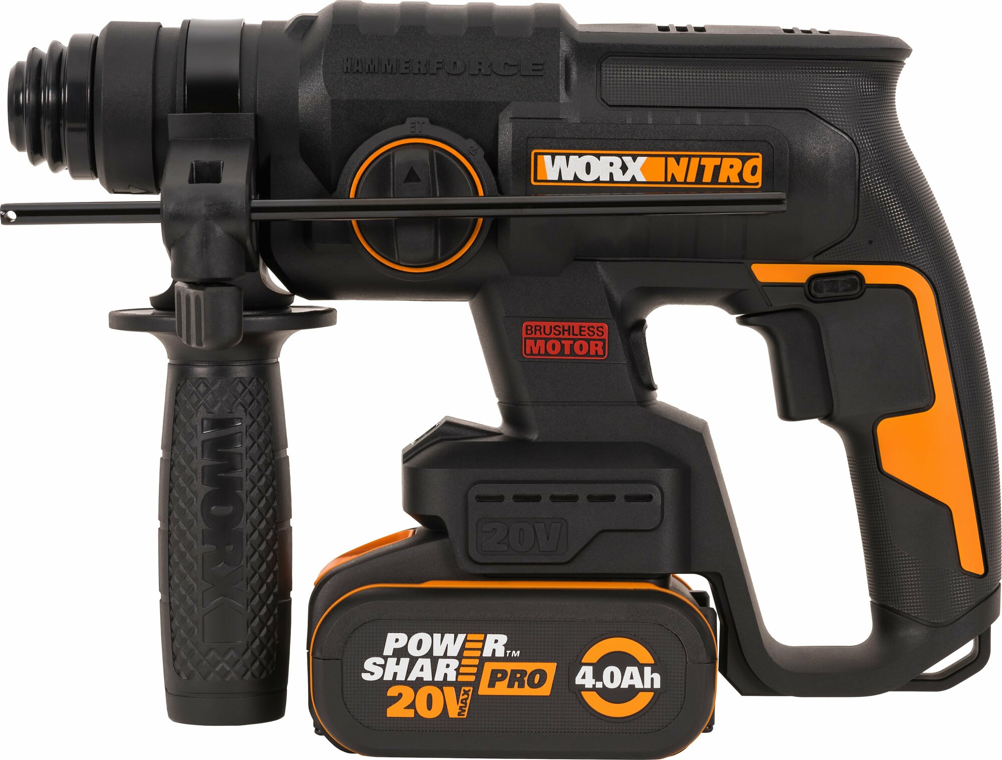 Перфоратор аккумуляторный бесщеточный SDS-plus Worx WX381.1, 20 В Li-ion 1x4 Ач, 2 Дж