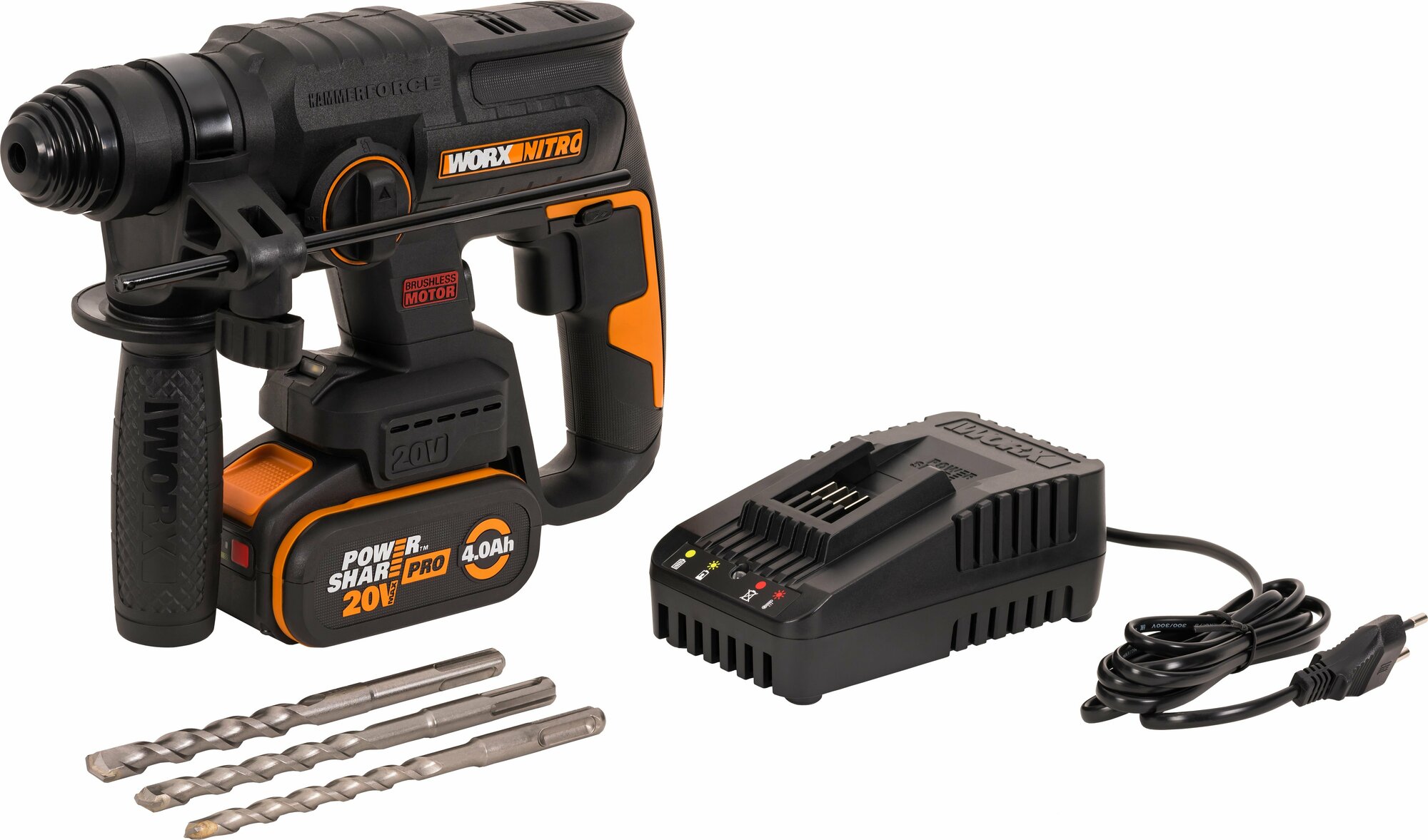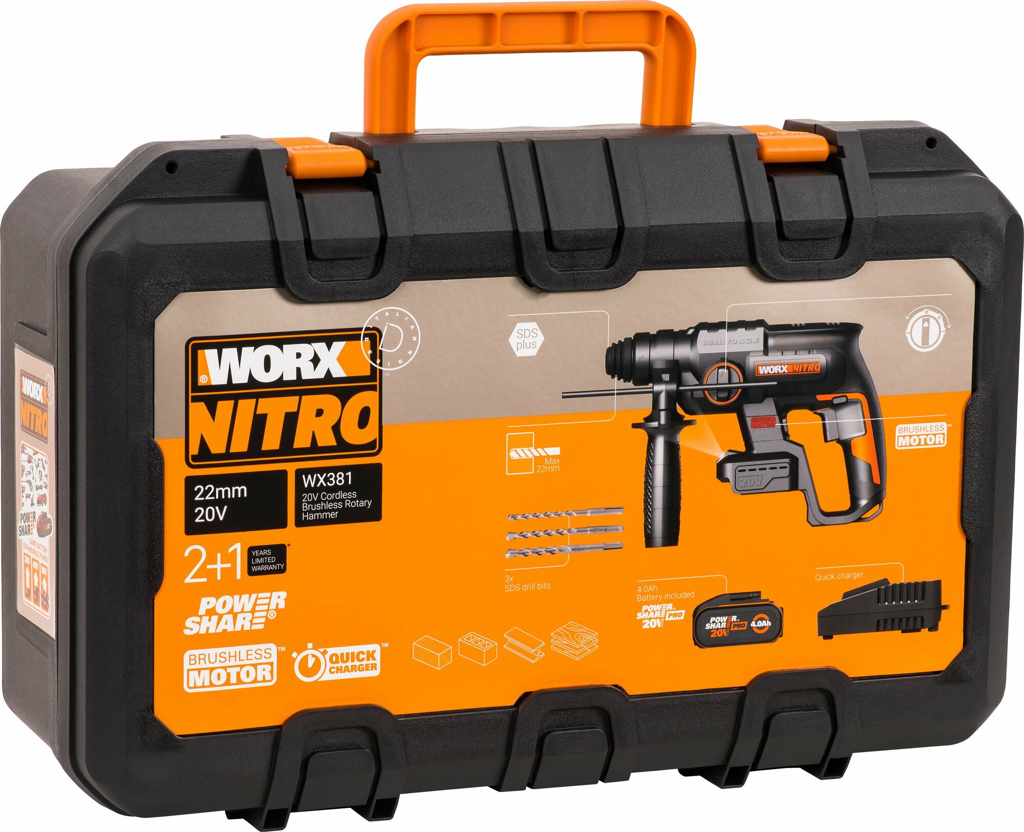 Worx Перфоратор аккумуляторный бесщеточный WORX WX381, 20В, 4Ач, ЗУ 2А, кейс