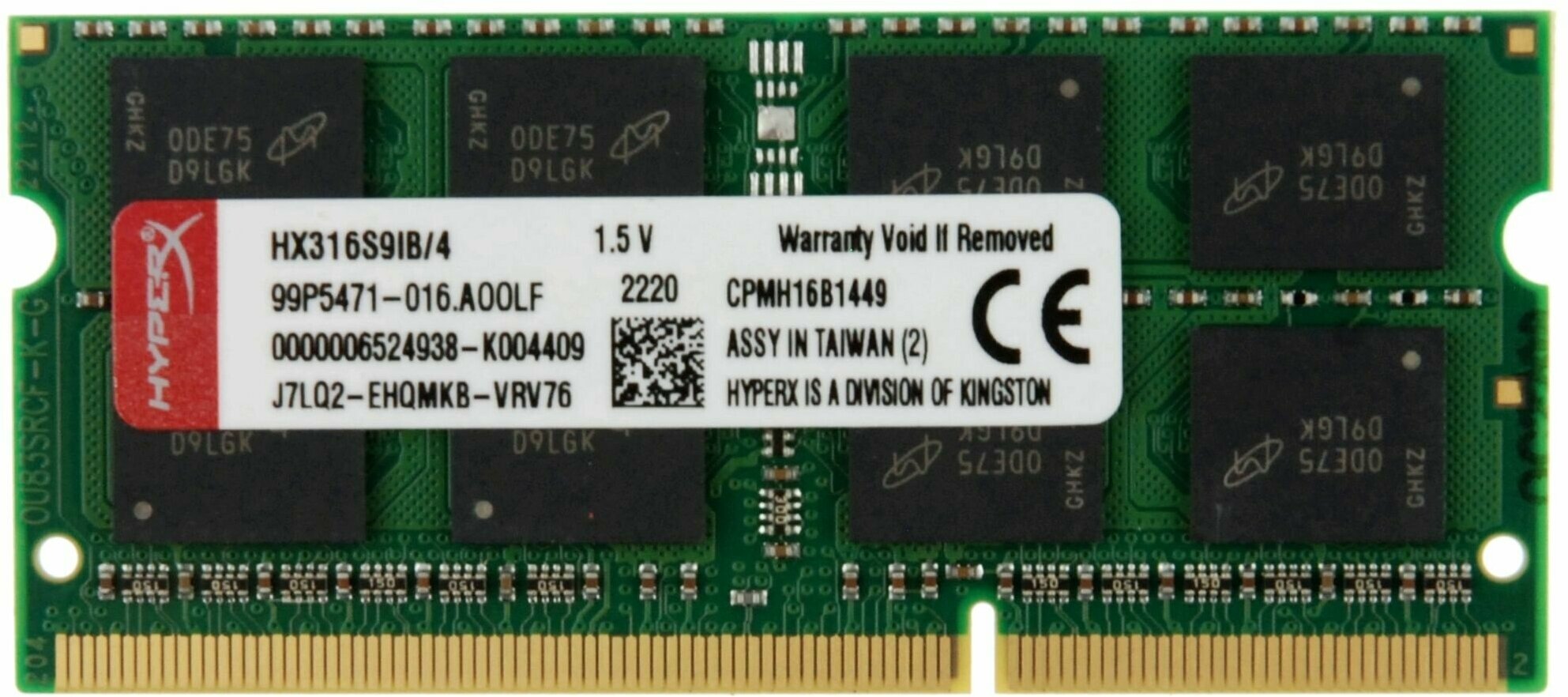 Оперативная память для ноутбука HyperX 4GB DDR3 SO-DIMM 1600MHz PC3-12800 информация: