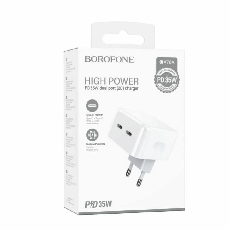 Сетевое зарядное устройство c 2xType-C Borofone, BA76A, PD 35W, QC3.0, белый информация: