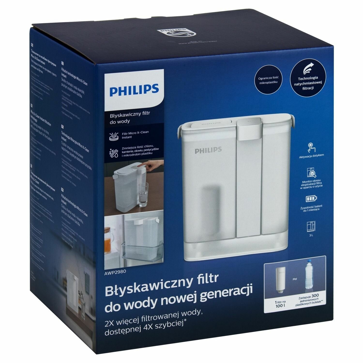 Комплект фильтр-диспенсер для очистки воды Philips AWP2980WH (с картриджем), 3л+дополнительные сменные картриджи Philips AWP225, 3шт; очищает и придает свежий вкус воде информация:
