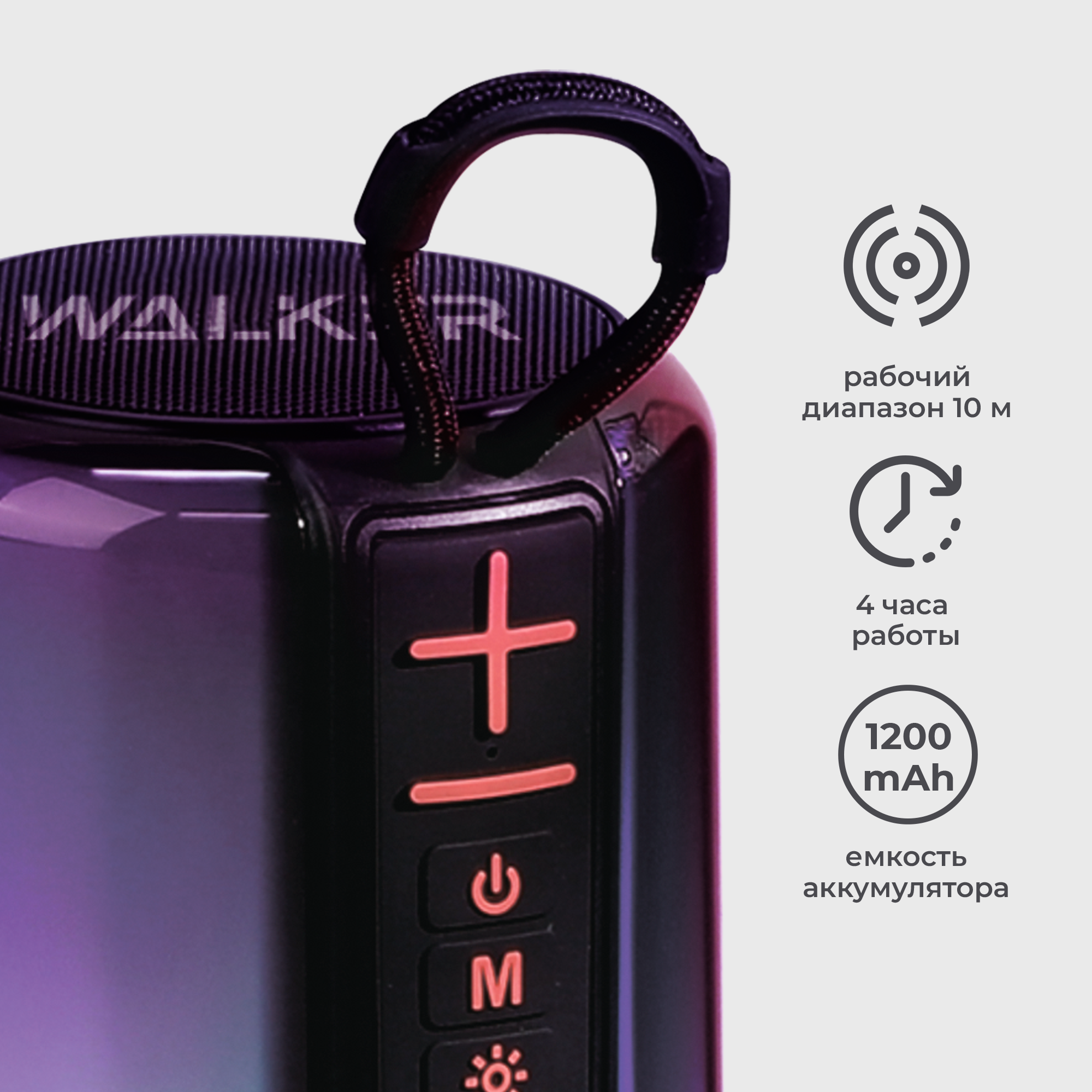 Портативная колонка, WALKER, WSP-125, 5Вт, RGB-подсветка, TWS, Bluetooth 5.3, колонка блютуз, колонка jbl, jbl колонка, bluetooth колонка, фиолетовая 1 529 ₽