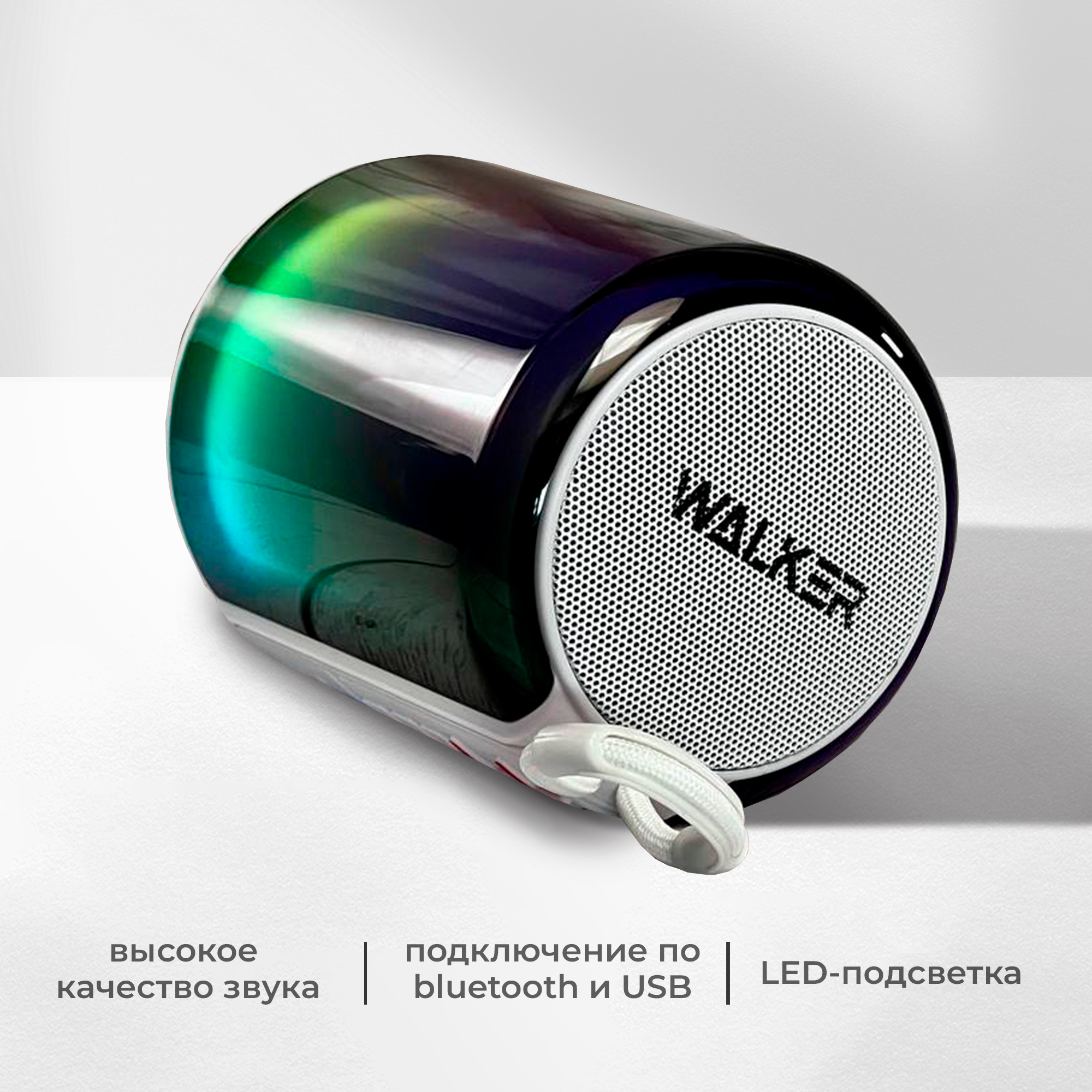 Портативная колонка, WALKER, WSP-125, 5Вт, RGB-подсветка, TWS, Bluetooth 5.3, колонка блютуз, колонка jbl, jbl колонка, bluetooth колонка, белая информация: