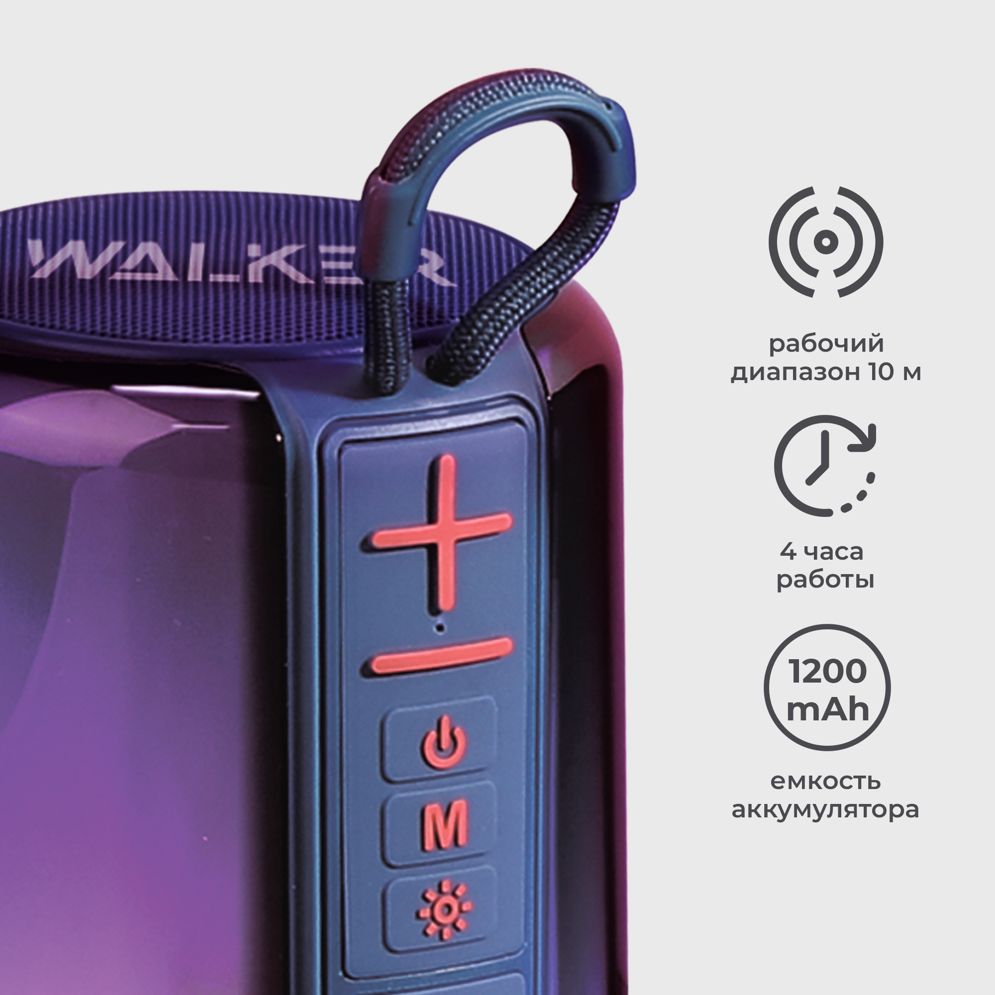 Портативная колонка, WALKER, WSP-125, 5Вт, RGB-подсветка, TWS, Bluetooth 5.3, колонка блютуз, колонка jbl, jbl колонка, bluetooth колонка, фиолетовая 1 529 ₽