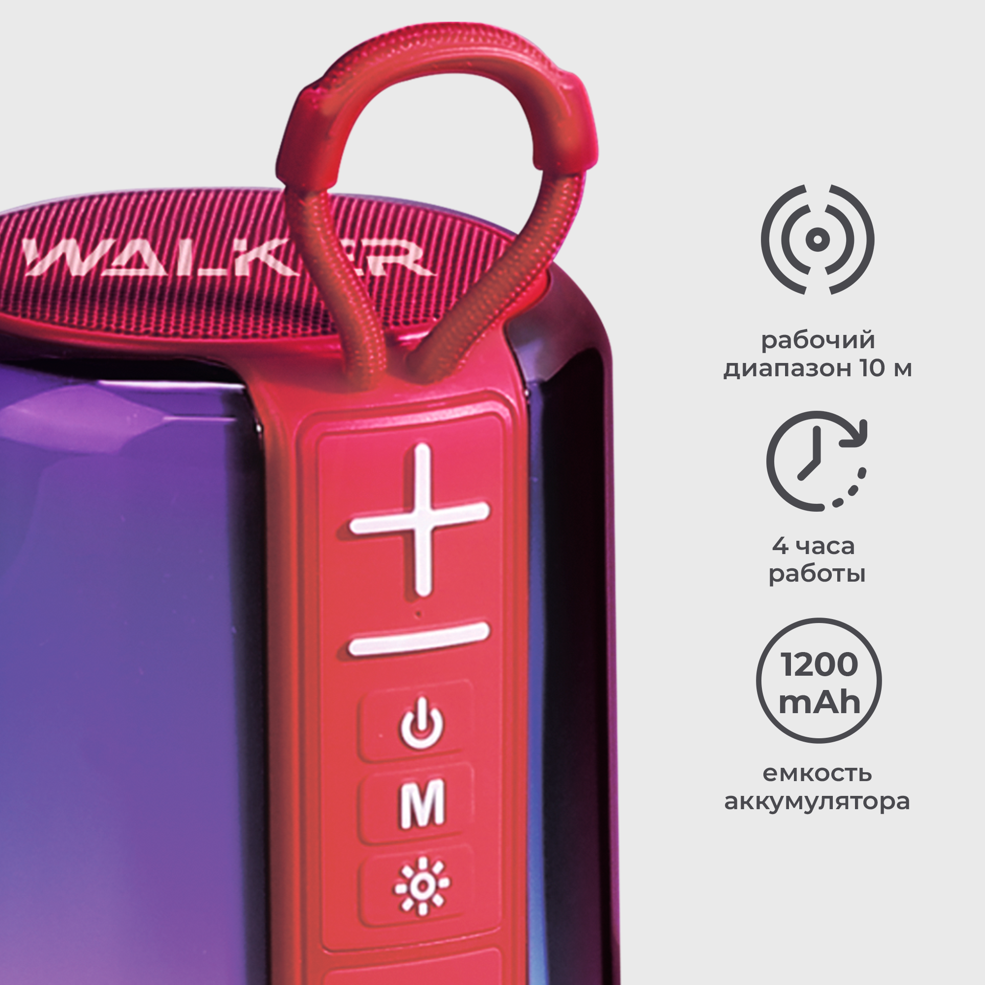 Портативная колонка, WALKER, WSP-125, 5Вт, RGB-подсветка, TWS, Bluetooth 5.3, колонка блютуз, колонка jbl, jbl колонка, bluetooth колонка, красная информация: