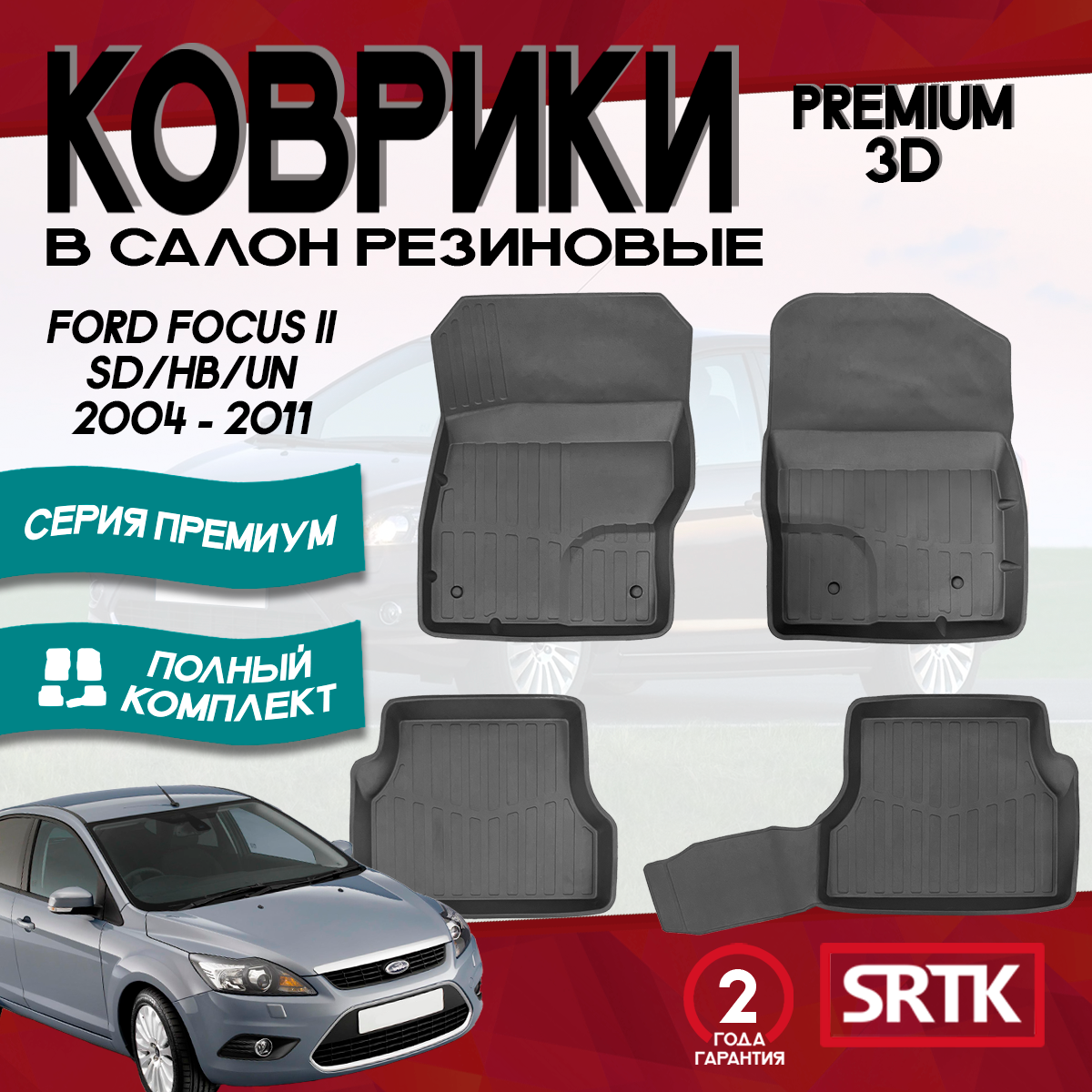 Коврики резиновые Форд Фокус 2 (2004-2011)/Ford Focus II (2004-2011) 3D Premium SRTK (Саранск) комплект в cалон информация: