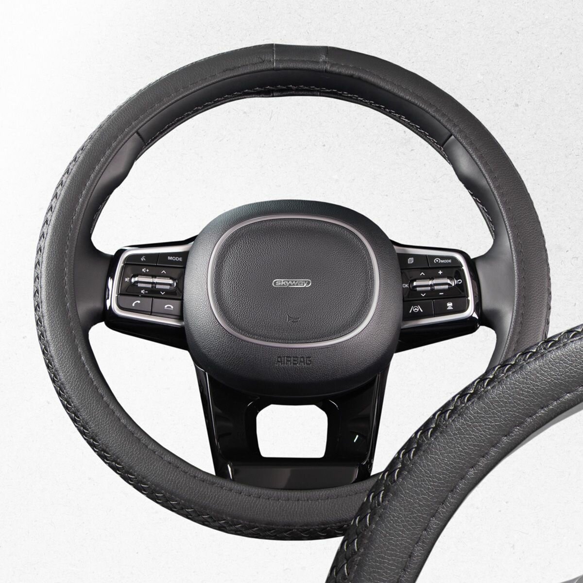 Оплетка на руль Top-12 SKYWAY M (37-39) серый экокожа, S01102501