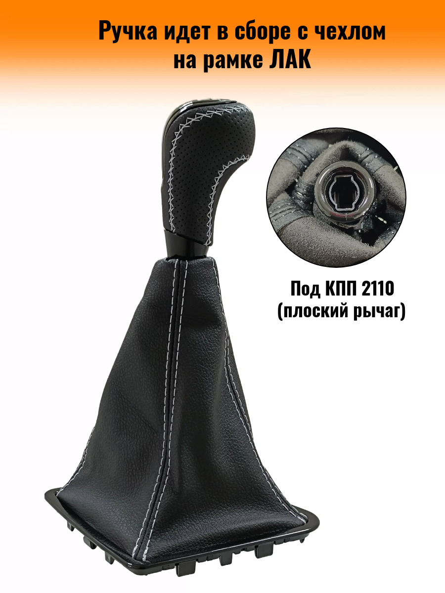 10 цен на Ручка КПП с чехлом в стиле Весты на ВАЗ-2170 Лада Приора 1 (Lada Priora 1) с ВАЗ-2110 кулисой, черный с серой строчкой "рамка лак"