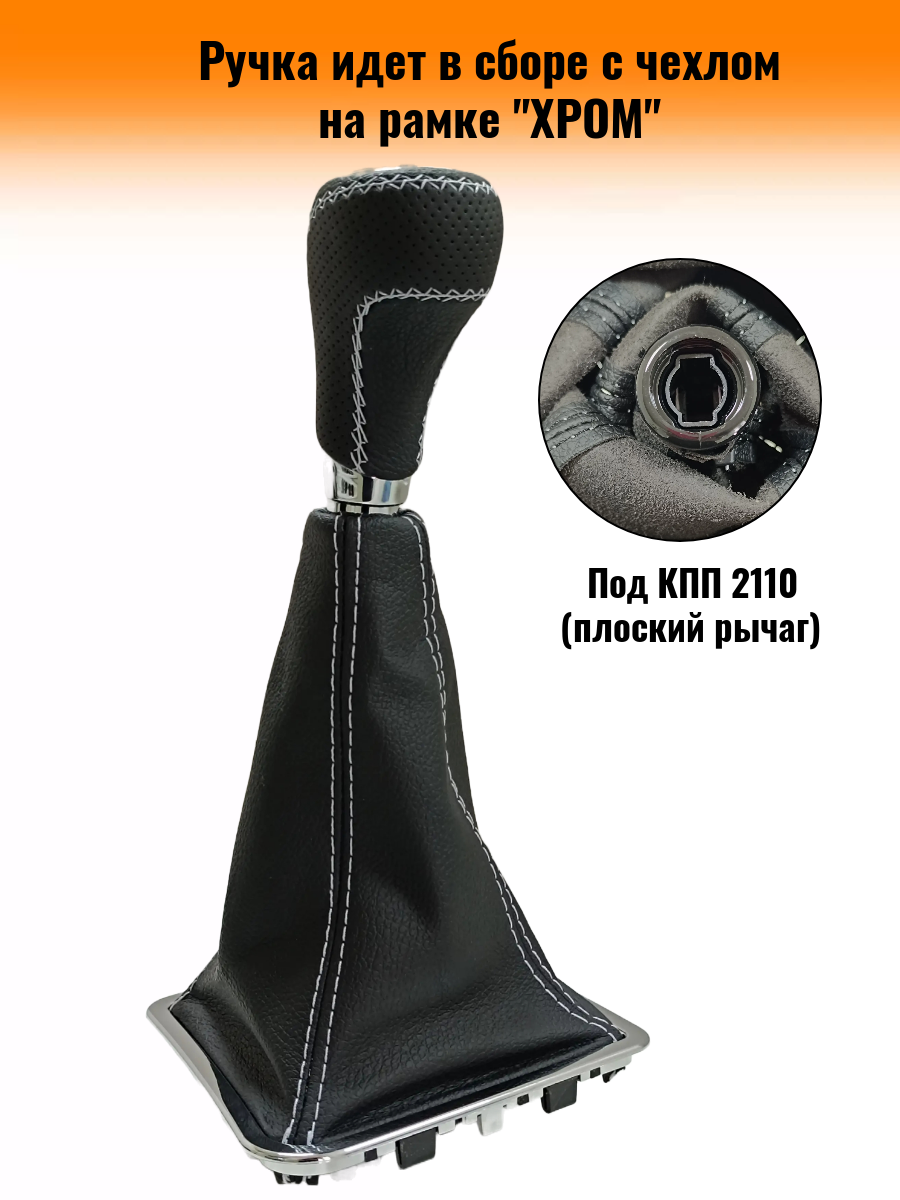 10 цен на Ручка КПП с чехлом в стиле Весты на ВАЗ-2170 Лада Приора 1 (Lada Priora 1) с ВАЗ-2110 кулисой, черный с серой строчкой "рамка хром"