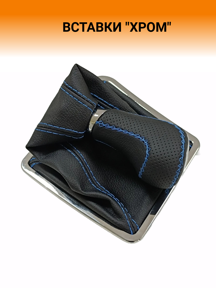 Ручка КПП с чехлом в стиле Весты на ВАЗ-2170 Лада Приора 1 с ВАЗ-2110 кулисой, черный с синей строчкой "рамка хром" 2 400 ₽