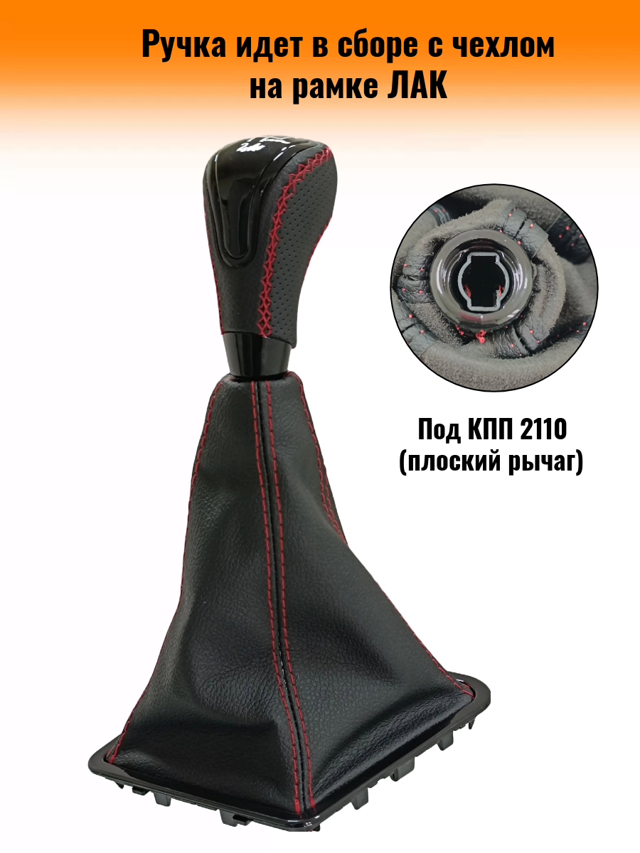 10 цен на Ручка КПП с чехлом в стиле Весты на ВАЗ-2170 Лада Приора 1 (Lada Priora 1) с ВАЗ-2110 кулисой, черный с красной строчкой "рамка лак"