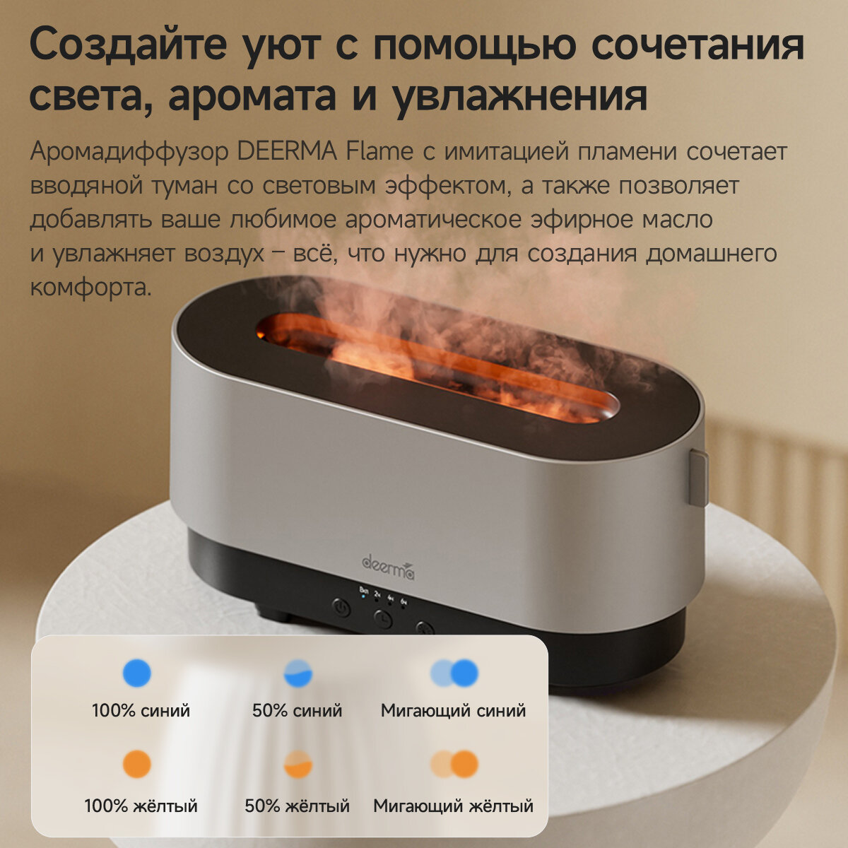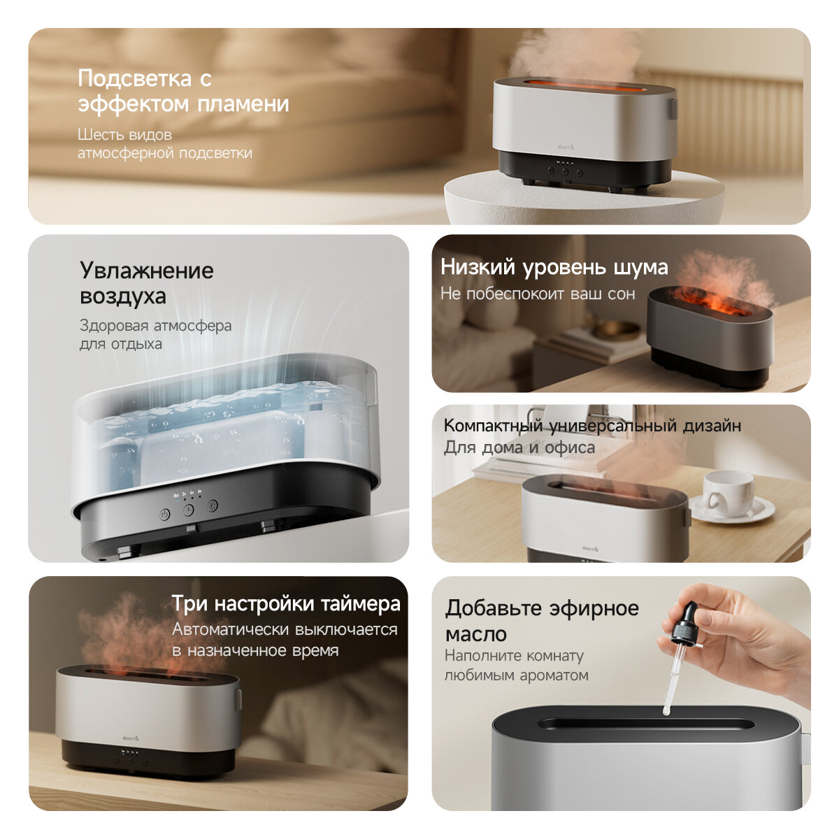 Увлажнитель воздуха и аромадиффузор с подсветкой для дома, ночник с эффектом пламяни
