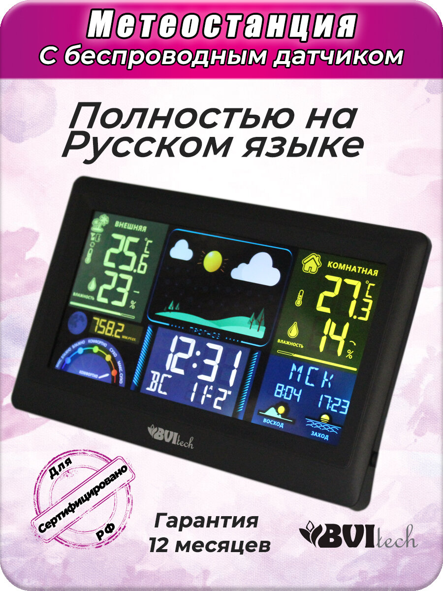 Метеостанция BVItech BV-677, черная, с беспроводным датчиком информация: