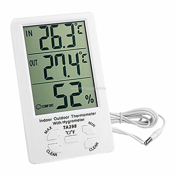 Термометр/ термометр гигрометр цифровой / выносной датчик/ TA-218A цвет белый