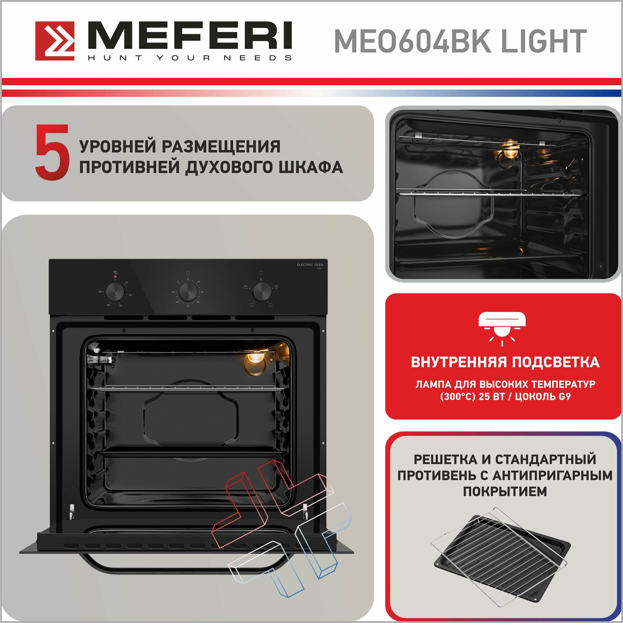 Встраиваемая электрическая духовка MEFERI 60 см MEO604BK LIGHT информация: