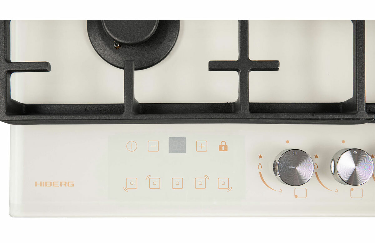Встраиваемая газовая варочная поверхность HIBERG VM 7155 Y из закаленного стекла в бежевом цвете