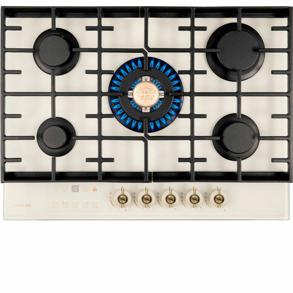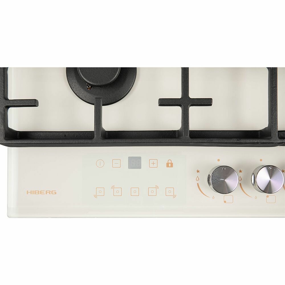 Встраиваемая газовая варочная поверхность HIBERG VM 7155 Y из закаленного стекла в бежевом цвете